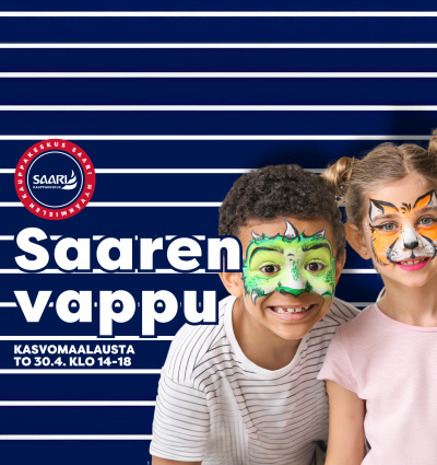 Vappuaattona 30.4. tuomme Kauppakeskus Saareen iloisen kasvomaalauspisteen, mistä perheen pienimmät voivat käydä hakemassa itselleen upeat, vapun teemaan sopivat kasvomaalaukset!